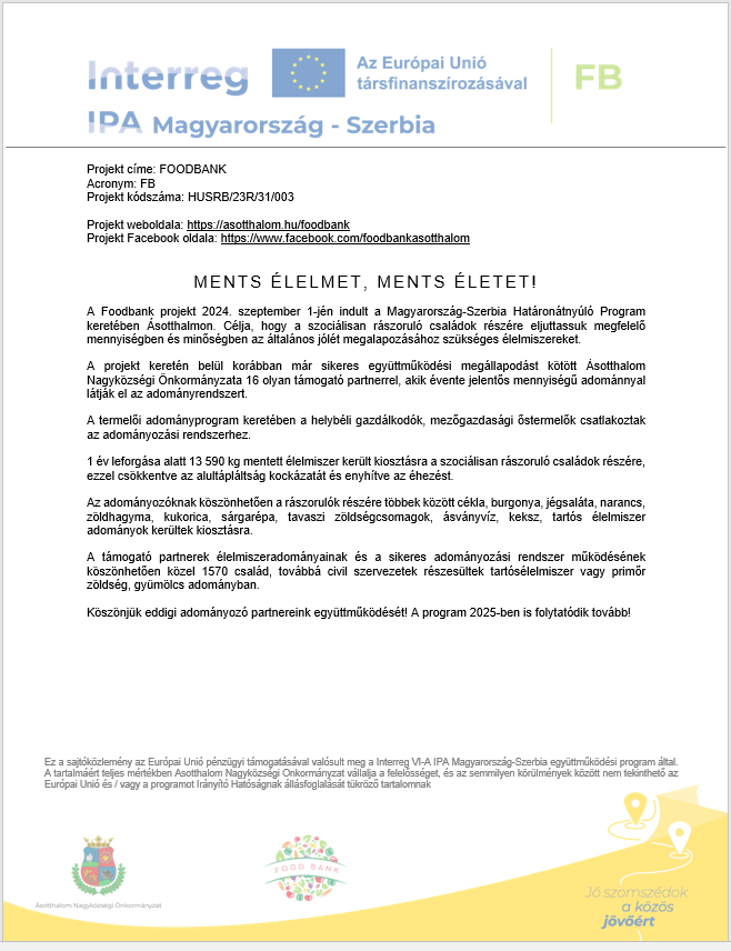 Sajtóközlemény – Mentett élelmiszerek összesítéséről