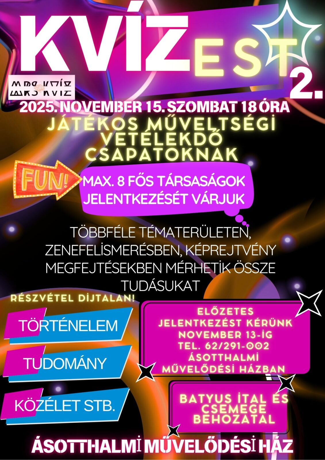 Kvízest 2. November 15-én 18 órától a Művelődési Házban