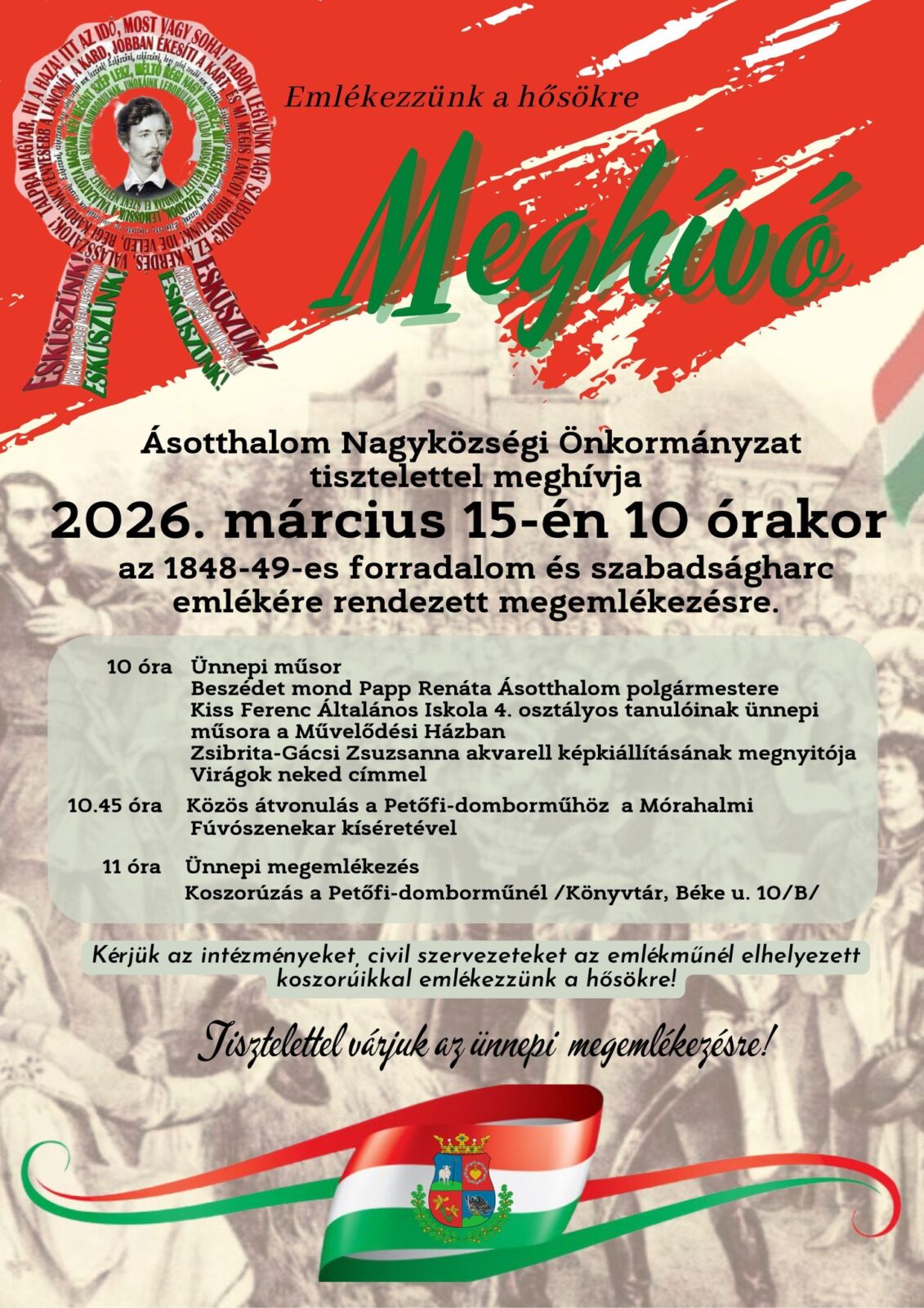 Meghívó a március 15-i ünnepi megemlékezésre.