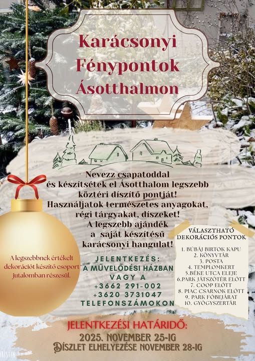 Karácsonyi Fénypontok Ásotthalmon – dekoráló verseny