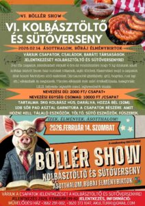 Ásotthalom Nagyközségi Önkormányzat 2026. február 14-én szombaton 7.30 órától szeretettel vár minden kedves látogatót az VI. Böllér Show & Kolbásztöltő és sütőversenyre a Bűbáj Élménybirtokon (6783 Ásotthalom, Béke u. 14.).