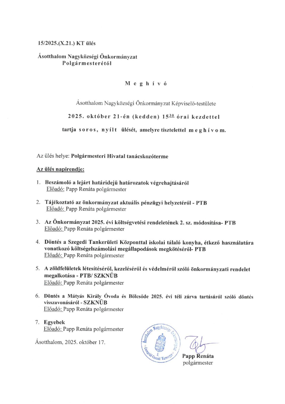 Meghívó – Képviselő-testületi ülés