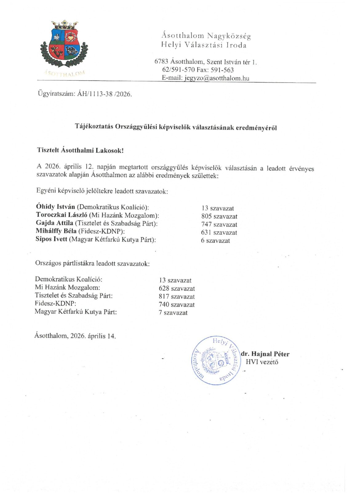 Tájékoztatás választásról 2026.